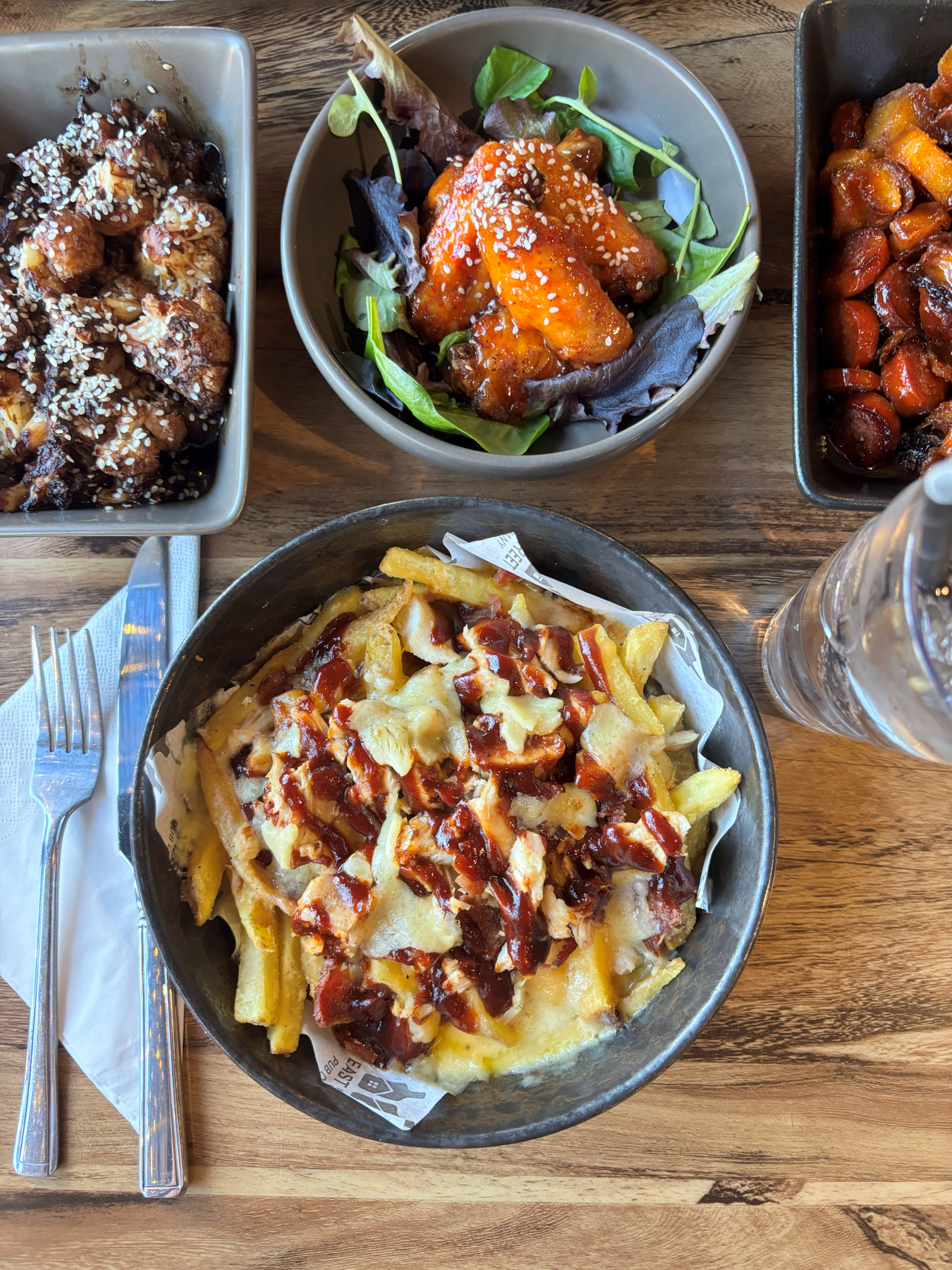Our traditional house chicken strips tossed in a sauce of your choice. Served with fries & slaw £10